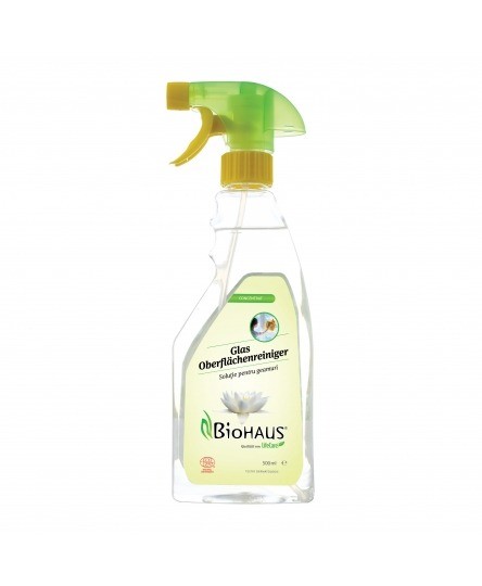 Solutia pentru geamuri BioHAUS® este recomandata pentru curatarea suprafetelor de sticla, plastic si teracota, fara a lasa urme.*Are in compozitie alcool vegetal, ceea ce determina uscarea rapida a suprafetelor curatate.